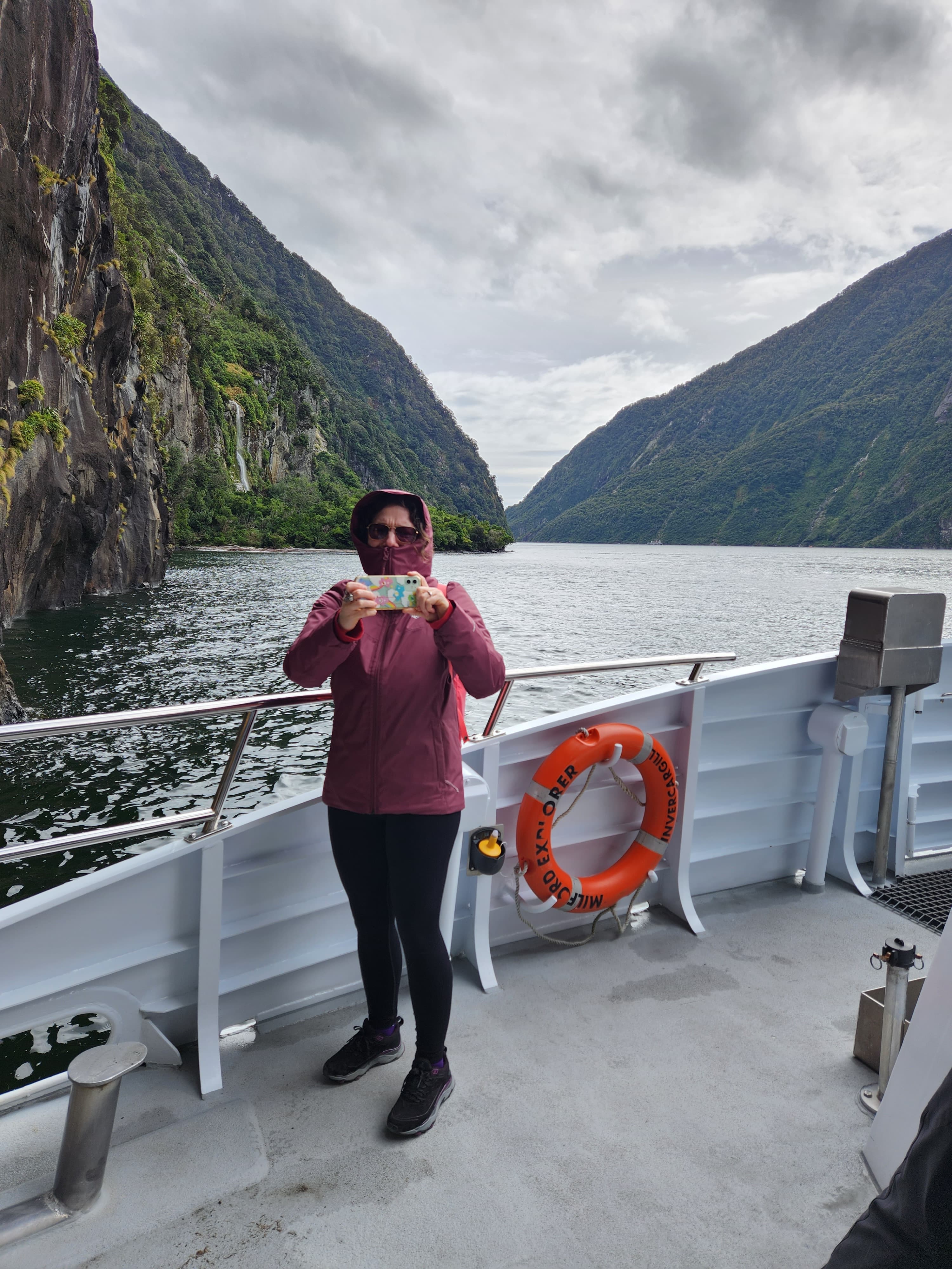 On Thursday, we headed to Te Anau to stay the night before heading to Milford Sound the next day. We stopped off at a few places including Nugget Point, and Gore for some lunch, where we also tried some of the locally distilled moonshine at the info site :) The scenery on the way to Te Anau was amazing and we checked into our fancy motel with a view over the lake and mountains.